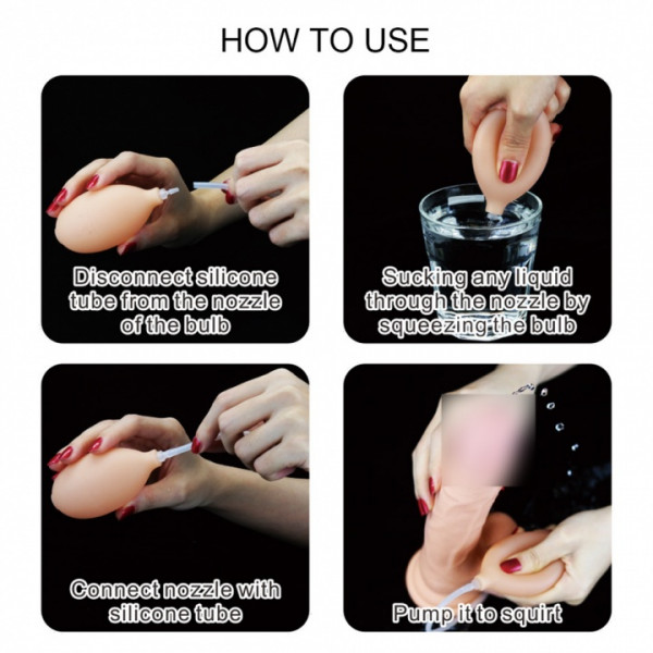 Фаллоимитатор с грушей, которая заполняется специальной жидкостью и в самый ответственный момент "выстреливает"! Для этого, всего лишь требуется нажать на грушу!